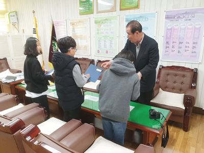 (재)해남장학재단은 함안군 칠서면 출신인 조성제(80·일본 동경 거주·동성상사㈜ 대표이사) 이사장이 고향 함안의 발전을 위해 10억 원의 현금과 부동산 20억 원을 출연해 1996년에 설립됐으며 2003년 3억 3000만 원을 추가 출연해 현재에 이르고 있다. 전달식에서 장학재단 조성훈 권한대행은 “올바른 생각과 바른 행동으로 장래의 꿈을 알차게 키워 훌륭한 인재가 되길 바라는 뜻을 담아 장학금을 전달한다”고 말했으며 3명의 학생들도 “부모님께 효도하며 열심히 공부해 나라의 소중한 인재가 되겠다”는 다짐을 했다. /배성호기자 baesh@gnynews.co.kr