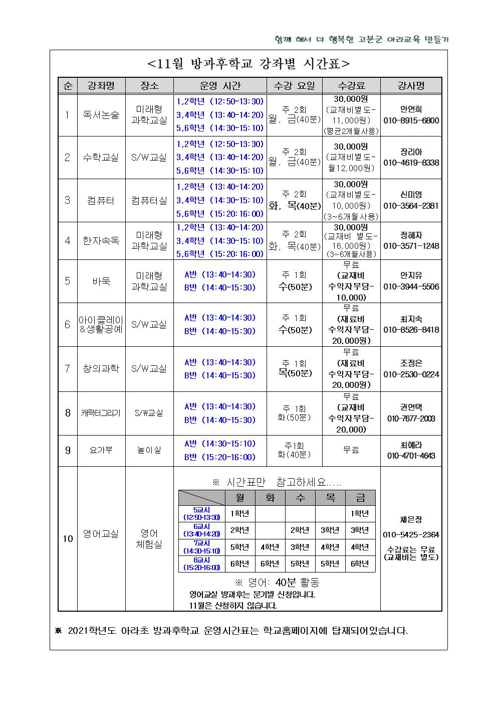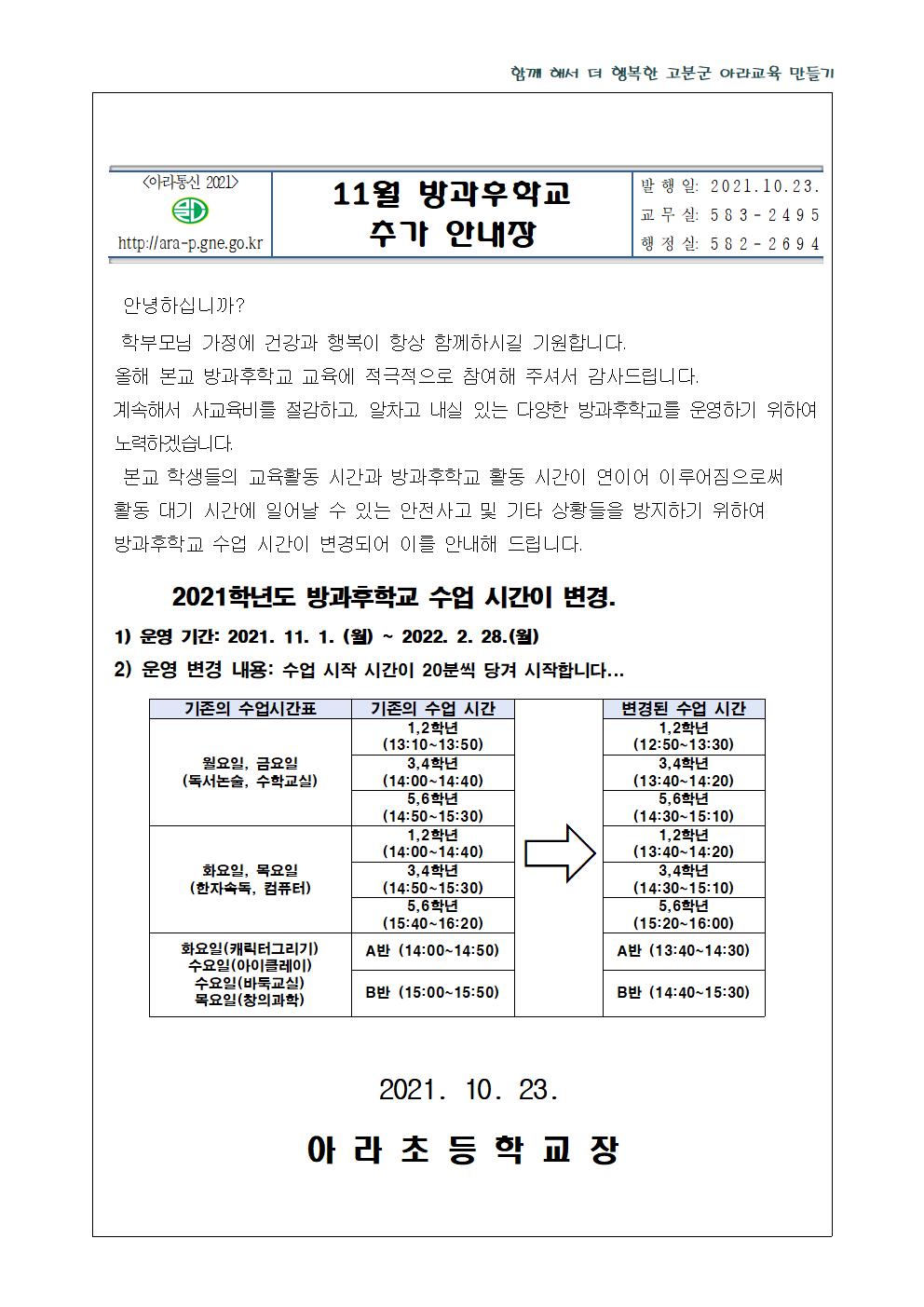 2021 11월 방과후학교 변경된 시간 반영 안내장(수정).hwp