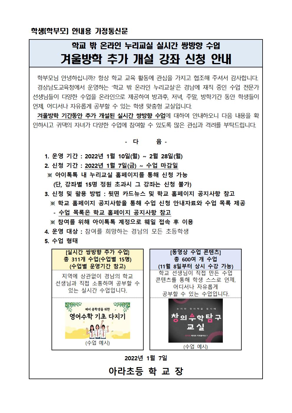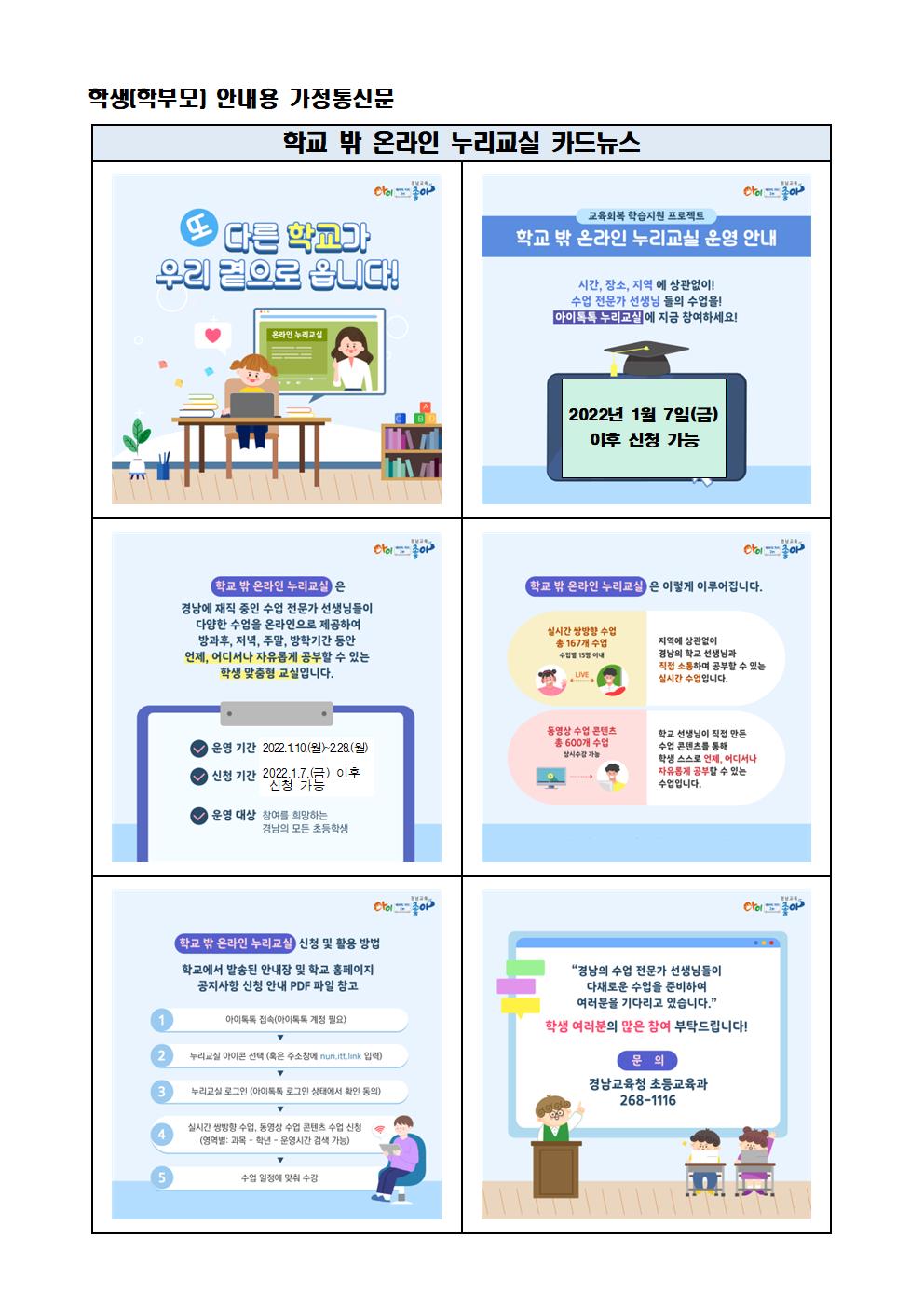 학교 밖 누리교실 신청 가정통신문^^
