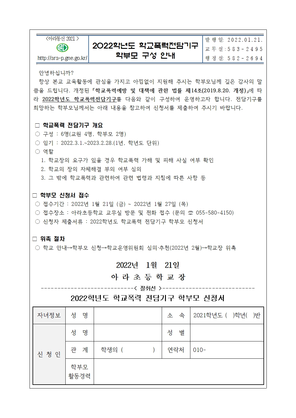 2022. 학교폭력 전담기구 학부모 구성 안내