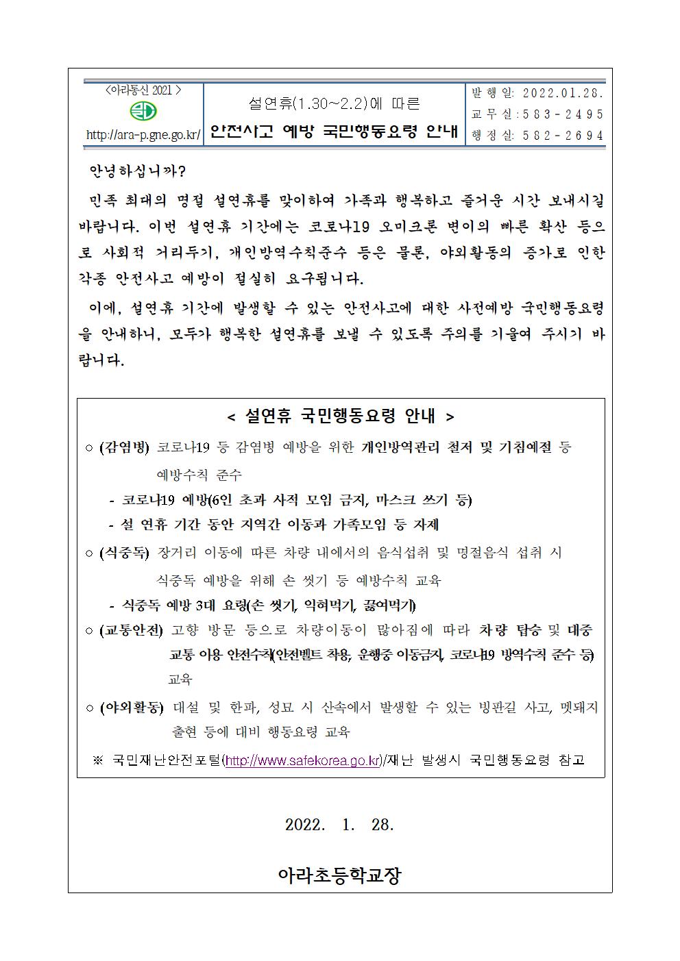 설연휴에 따른 안전사고 예방 국민행동요령 안내