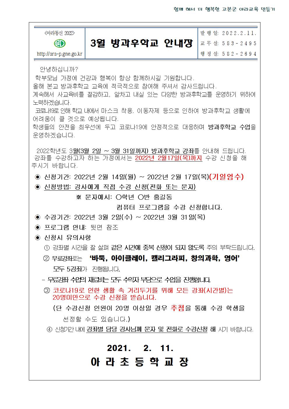 2022학년도 3월 방과후학교 안내장(수정 최종본)입니다.
