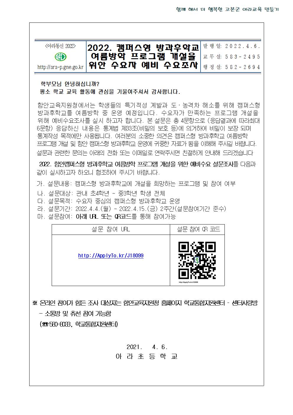 2022. 캠퍼스형 방과후학교 여름방학 프로그램 개설을 위한 수요자 예비 수요조사 안내장.hwp