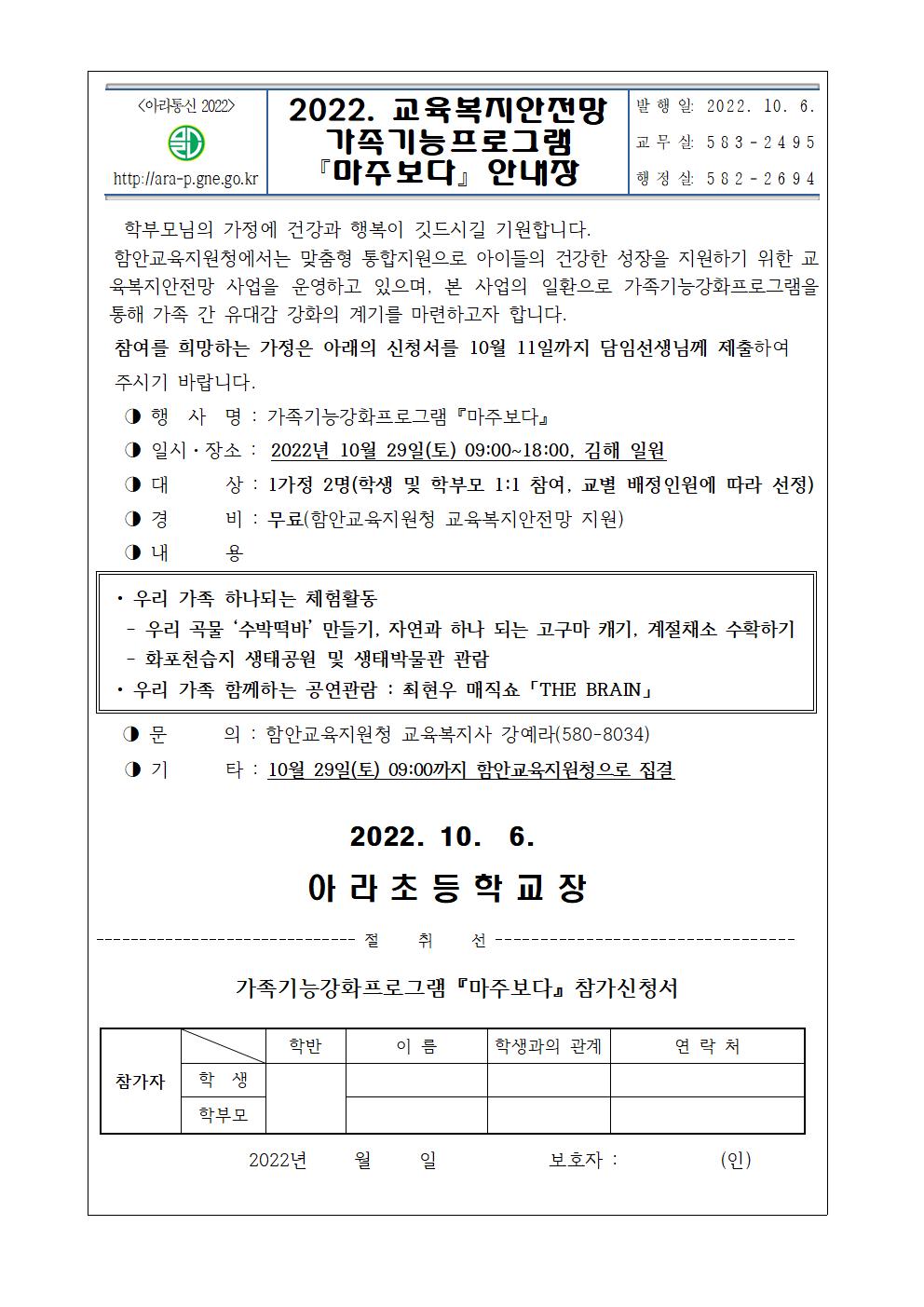 2022. 교육복지안전망 가족기능프로그램 마주보다 안내장^^