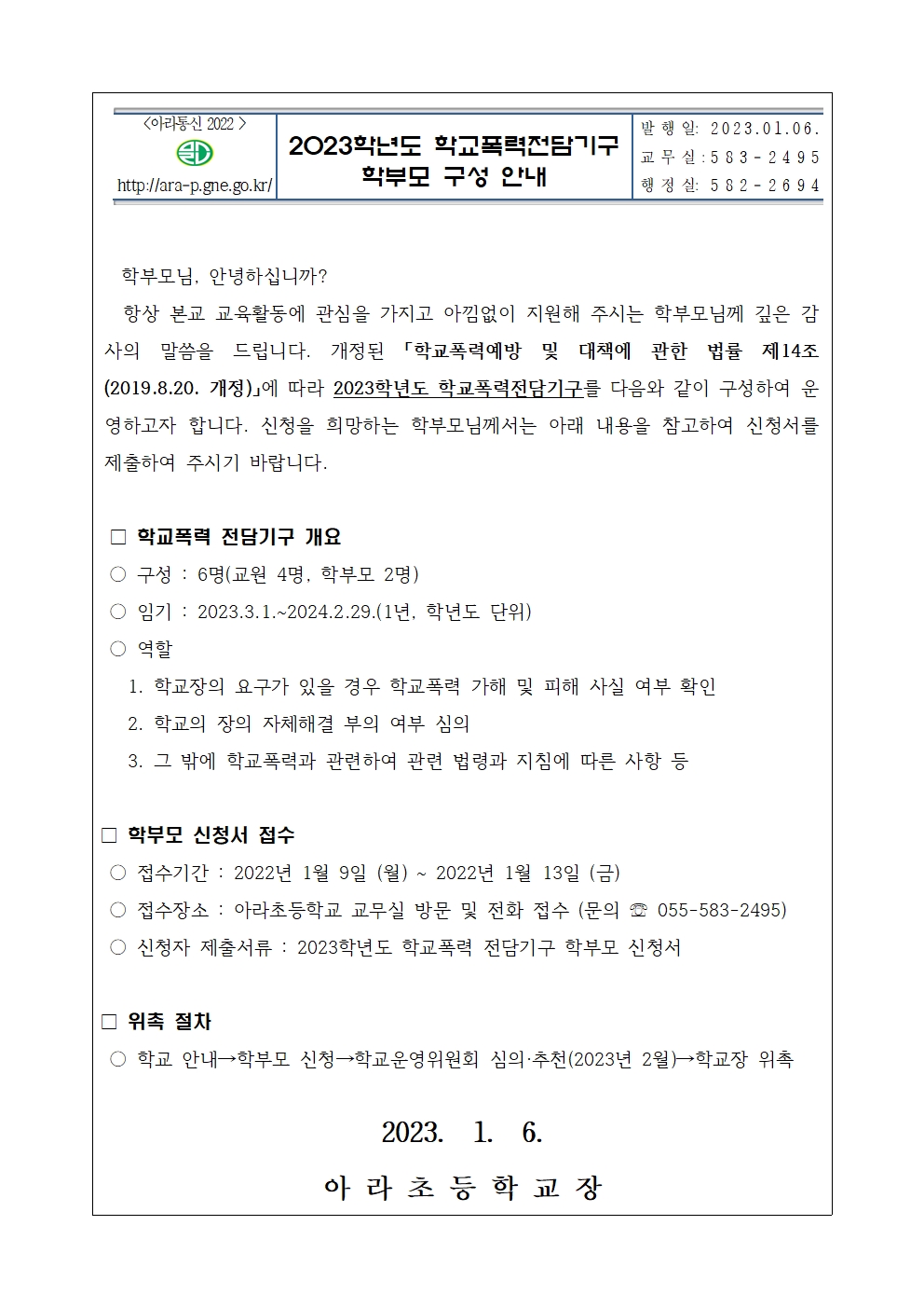 2023. 학교폭력전담기구 학부모 구성 안내